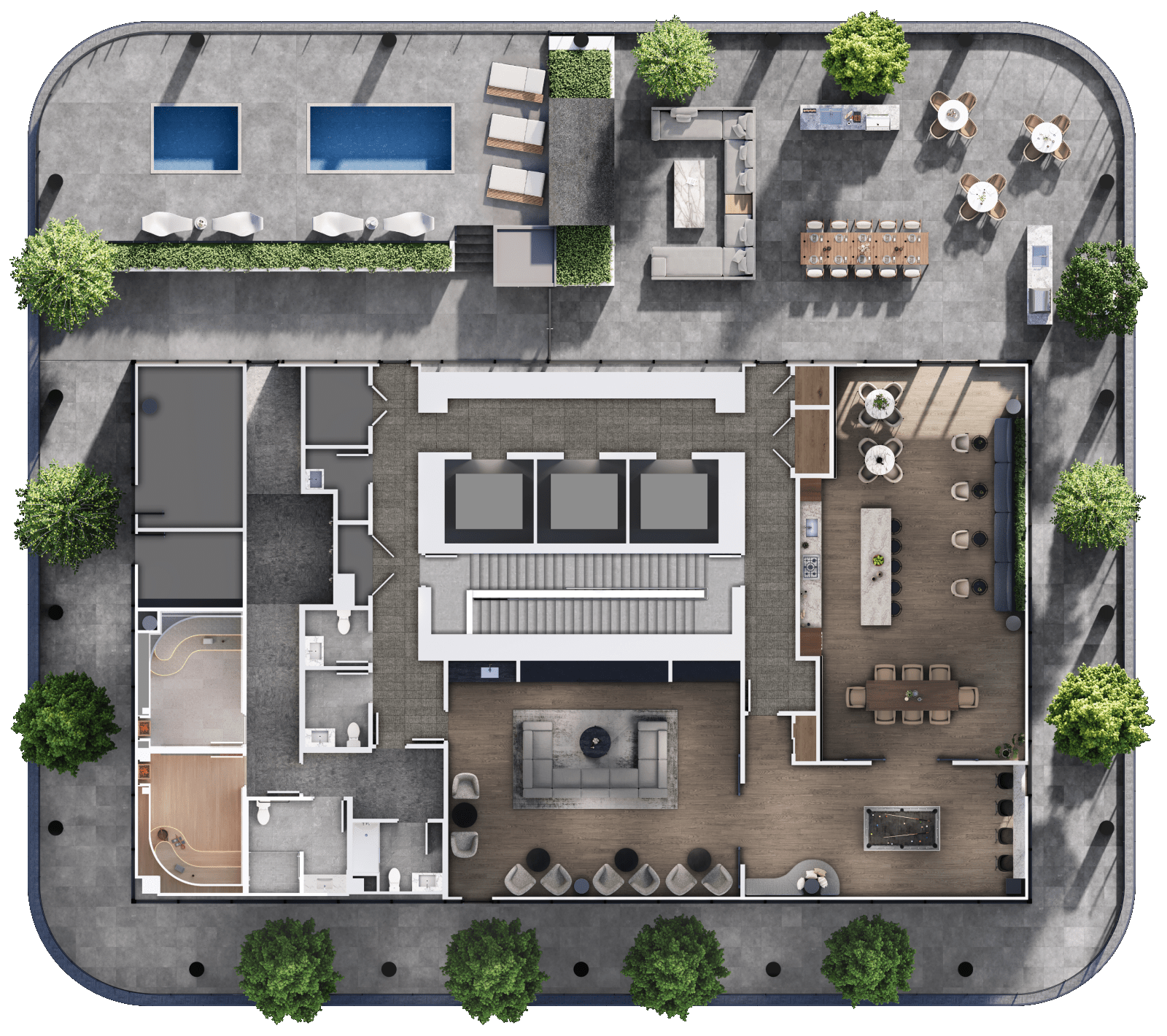 At Reign, the essential amenities you need for an elevated way of life are an elevator stop away. Each of Reign’s towers are outfitted with contemporary amenities that were designed with community in mind—and are accessible to all across both buildings—giving you ample space to gather with those you love.